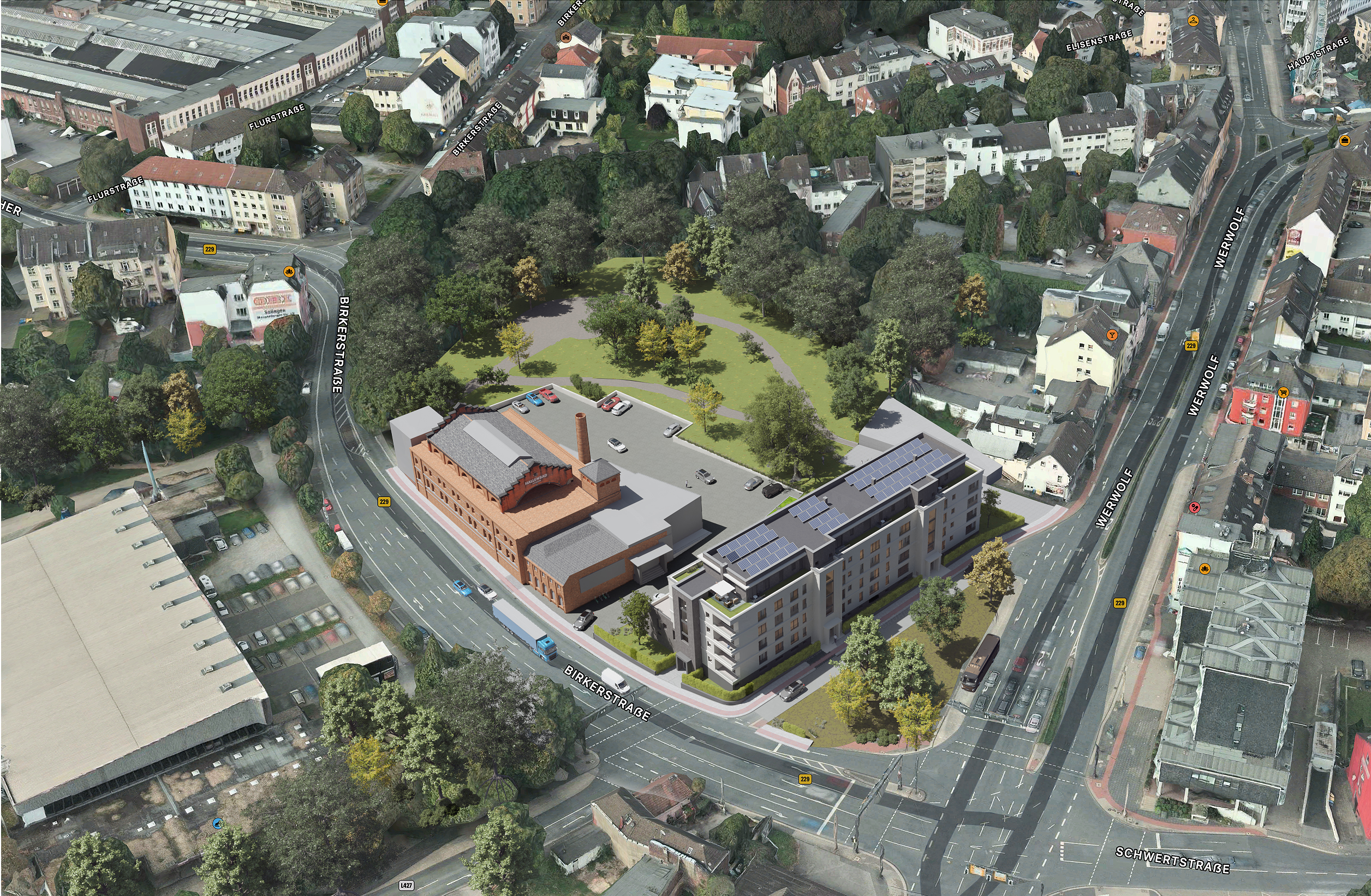 Birker Bad – Hallenbad aus 1903 Projektname Birker Bad – Hallenbad aus 1903 Typ Umbau, Erweiterung & Sanierung Standort Solingen Nutzung Umbau zu Wohngebäude mit Gewerbeeinheiten Bruttogrundfläche ca. 10.000 m² Einheiten 9 Besonderheiten Denkmalschutz